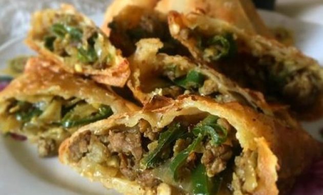 Samosa Daging Sapi – Daging cincang berkualitas tinggi dimasak dengan rempah-rempah pilihan.